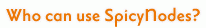 SpicyNodes is ideal for sites with between 10 and 1,000 nodes that are optimized for browsing either hierarchies or networks. It can be used on web sties from corporations, nonprofits, educational institutions, museums, the media, bloggers, local governments, and poets and other creative people. It is less effective for sites with a great quantity of hyperlinks.