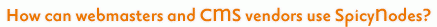 Vendors of content management systems can use SpicyNodes by integrating it into their products. SpicyNodes’ XML-based Application Programming Interface makes it easy to adapt to any CMS implementation.