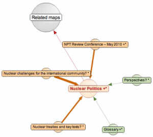 blog to report on the organization’s collaboration with CNN’s Christiane Amanpour and its new stream interface, as well other initiatives such as mapping the White House’s Open Government Initiative and the WAVE climate change project.\n\nDebategraph’s projects are laudable and their mapping technology is on the right track. As with SpicyNodes, Debategraph allows you to link from node to node, but the nodes wiggle and jiggle, causing a disconcerting visual vibration. You can create a similar experience, with smoother animation, using SpicyNodes. Plus, with SpicyNodes, you can display much more information within a centered node and effortlessly embed images and video.